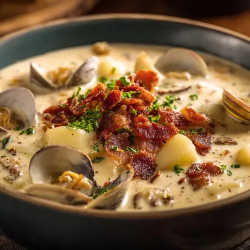 Is there anything more comforting than a bowl of clam chowder on a chilly day? The rich, creamy broth, the tender bits of potato, and that unmistakable brininess from the clams come together to create a dish that warms your heart and fills your belly. Growing up, I remember my grandmother stirring a pot of clam chowder on the stove, the savory aroma drifting through the house and beckoning us to the table. What sets this Authentic New England Clam Chowder apart is its simplicity and depth of flavor, making it an ideal choice for casual weeknight dinners or a festive gathering with friends and family.