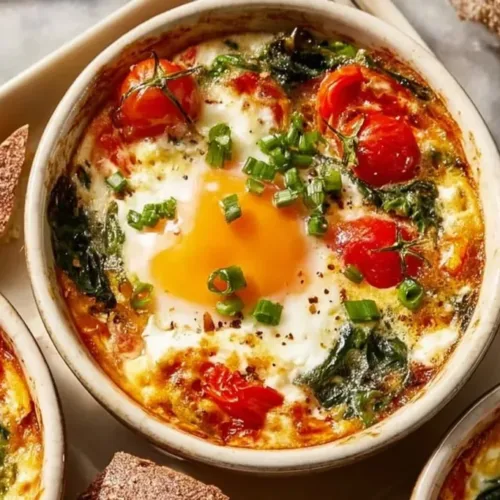 Baked Feta Eggs with Tomatoes and Spinach is a delicious and simple dish that combines fresh ingredients and rich flavors. It’s perfect for breakfast, brunch, or even a light lunch. This recipe offers a healthy balance of protein from the eggs and feta cheese, while the tomatoes and spinach add vibrant colors and nutrients. Plus, it’s quick to prepare and requires minimal clean-up, making it an ideal choice for busy days.