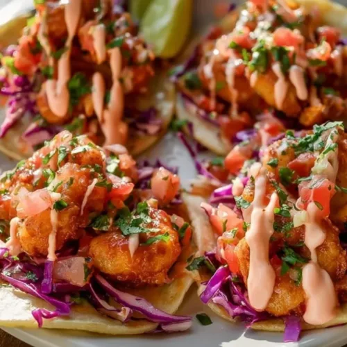 Serve the tacos immediately after assembling them to keep the shrimp crispy. You can pair them with lime wedges on the side for added flavor. They can be enjoyed with additional toppings like diced tomatoes, cilantro, or avocado if desired.