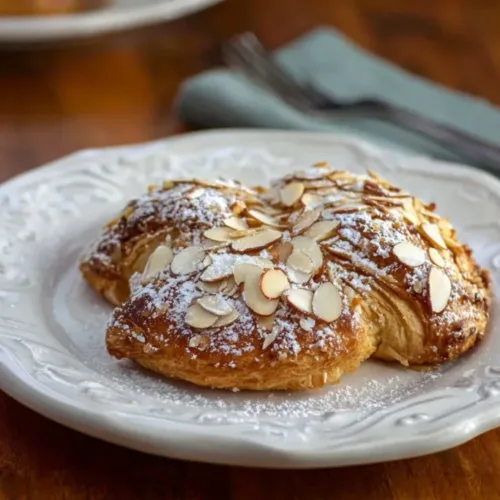Serve the almond croissants warm or at room temperature. You can dust them with powdered sugar just before serving for an extra touch of sweetness. They pair well with coffee or tea and make a lovely addition to any breakfast or brunch table.