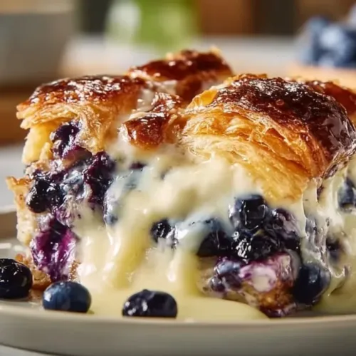 Indulge in the comfort and delightful flavors of this Blueberry Cream Cheese Croissant Casserole—you won’t regret it!