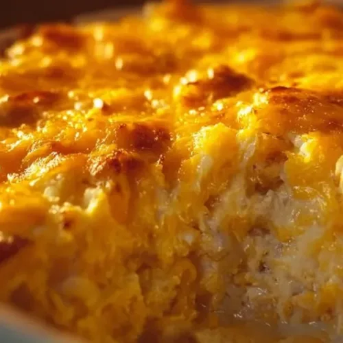 Cheesy Hashbrown Casserole is a warm and comforting dish perfect for any occasion. It combines the creamy texture of sour cream with the crunch of hash browns and the richness of cheddar cheese. This side dish is easy to make, delicious, and always a crowd-pleaser at gatherings, family dinners, or holiday celebrations.
