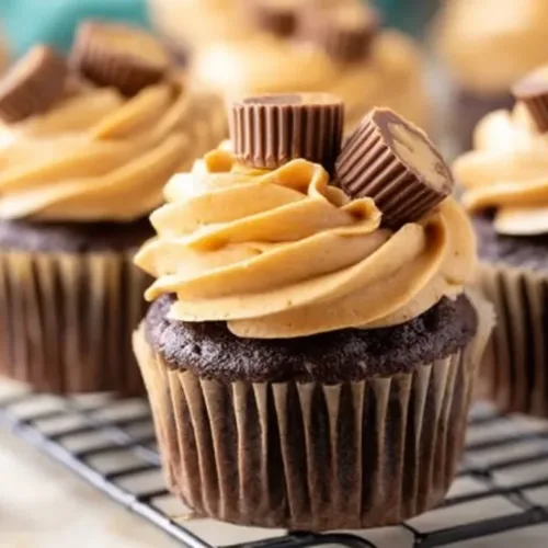 To serve these cupcakes, place them on a decorative plate. You can add extra peanut butter cups or Reese’s Pieces on top of the frosting for a fun and delicious touch. These cupcakes are best enjoyed fresh, but they can also be enjoyed a day or two later.