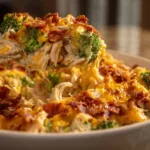 Serve the Creamy Low Carb Chicken Casserole hot, right out of the oven. It pairs well with a fresh green salad or steamed vegetables for a complete meal. You can also add a sprinkle of fresh herbs like parsley or chives on top for added color and flavor.