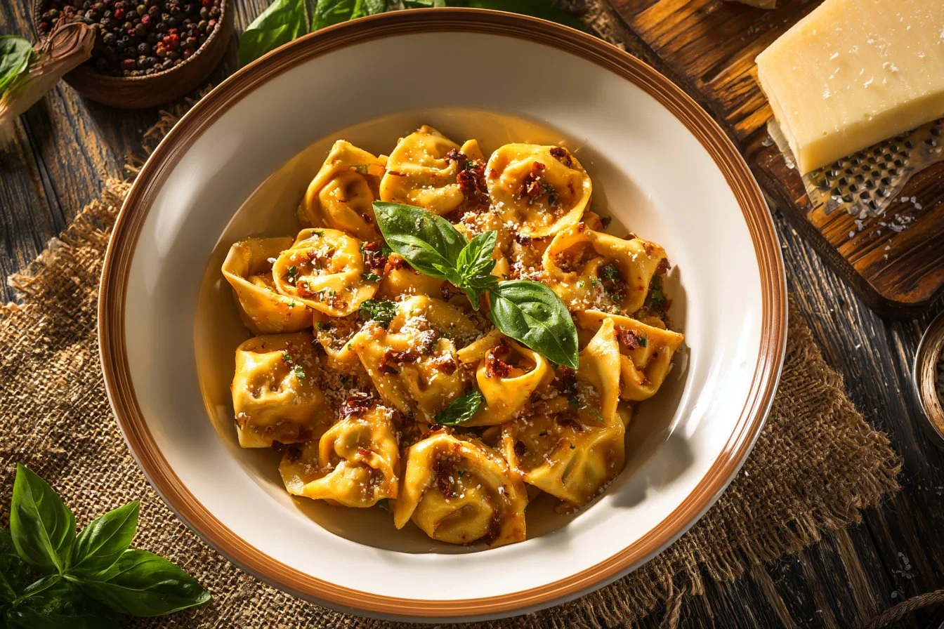 - Add tortellini, mozzarella, and heavy cream, stirring well.