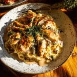 This dish is best served warm. Spoon the creamy orzo onto a plate and top it with the tender chicken and caramelized onions. You can add a sprinkle of extra herbs or grated cheese for an added touch.