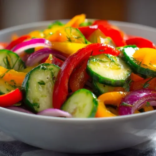 Try making this Cucumber Sweet Pepper Salad the next time you need a fresh, vibrant side dish, and enjoy the wave of deliciousness it brings to your table!