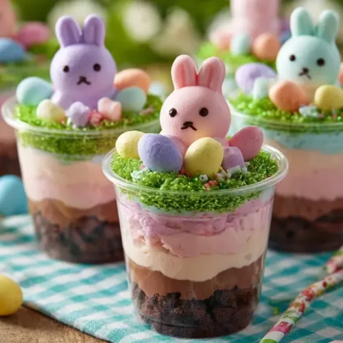 Vegan Delight: Swap the chocolate pudding with a plant-based alternative and use coconut whipped cream for a delightful vegan version of Easter Dirt Cups.