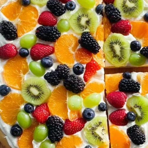 Easy Fruit Pizza is a fun and delightful dessert that everyone will love. It’s perfect for family gatherings, birthday parties, or a simple treat after dinner. With a sweet cookie crust, creamy frosting, and colorful fresh fruit on top, it’s not only delicious but also a feast for the eyes. Plus, it’s easy to make, which means you can spend less time in the kitchen and more time enjoying time with your loved ones!