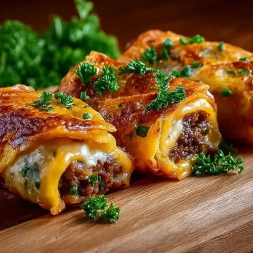 Garlic Butter Beef Cheeseburger Rollups are a fun and tasty twist on traditional burgers. They combine the rich flavors of garlic butter, juicy beef, and melted cheese all wrapped in a flaky crescent dough. Perfect for parties, game day, or a simple family dinner, these rollups are easy to make and everyone will love them!