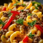 As I stirred the pot full of cheesy delight, I couldn’t help but sneak a taste, the rich creaminess contrasting delightfully with the robust flavors of seasoned beef and veggies. Every bite was like a hug from the inside, and I knew I had struck gold. This dish quickly became a family favorite, and I’m convinced it will charm your socks off too! Get ready to cozy up in your kitchen and whip up this delicious recipe that’ll have everyone at your table asking for seconds.