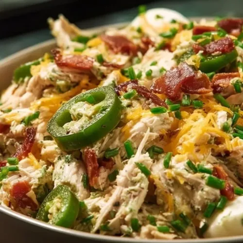 High Protein Jalapeno Popper Chicken is a healthy twist on the classic jalapeño poppers you love. This dish is packed with protein thanks to shredded chicken and cream cheese, making it a great option for a filling meal or a party appetizer. The combination of spicy jalapeños, creamy cheese, and savory chicken makes it a delicious choice that will satisfy your cravings.