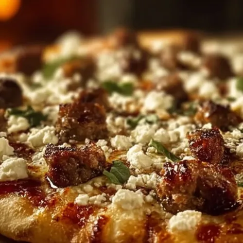 Hot Sausage Feta Honey Pizza is a unique twist on traditional pizza that brings together spicy, creamy, and sweet flavors in each bite. The combination of spicy sausage and creamy feta gives a rich taste, while the hot honey adds a delightful sweetness that balances it all out. It’s perfect for a fun dinner, a game night, or any gathering with friends and family.