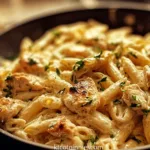 Pour in the chicken broth and let it simmer for 2-3 minutes. Then, add the heavy cream, Parmesan cheese, and Italian seasoning, stirring until the cheese melts and the sauce is smooth and creamy. You’ll be struck by its rich, inviting aroma!