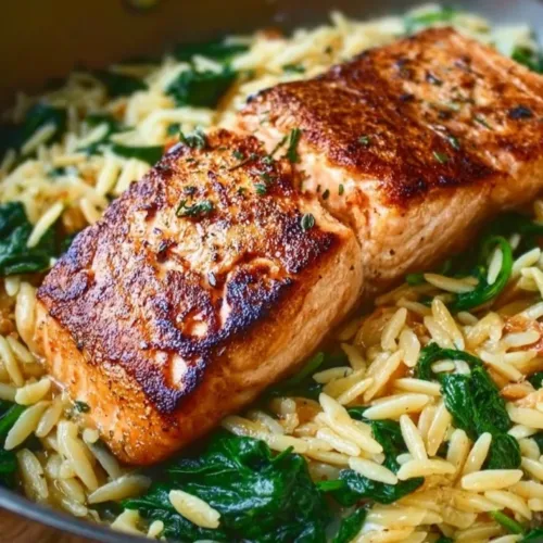 The aroma of freshly seared salmon dances through the kitchen, mingling delightfully with the fragrances of sautéed garlic and onion. Picture a comforting one-skillet meal that not only satisfies your taste buds but also makes your cooking experience effortless. This One Skillet Salmon with Lemon Orzo is a testament to simplicity and flavor, combining wholesome ingredients into a harmonious dish. Imagine sinking your fork into tender salmon over a bed of zesty orzo pasta enriched with baby spinach and a splash of lemon.