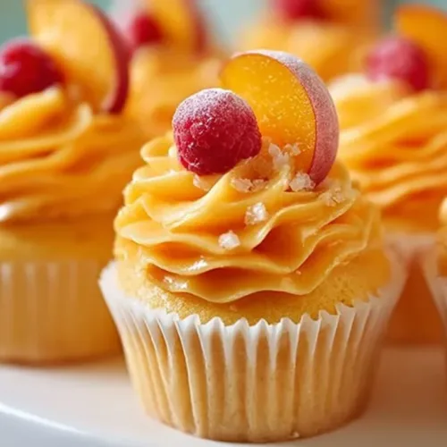Peach Bellini Cupcakes are a delightful twist on the classic Italian cocktail. They combine the sweet and juicy flavor of peaches with the effervescence of champagne, all in a soft and fluffy cupcake. These cupcakes are perfect for summer gatherings, parties, or any celebration where you want to impress your guests with a unique treat. With their light and fruity taste, they capture the essence of a Peach Bellini in a fun and delicious form.