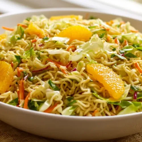 Not only is this salad a feast for the senses, but it also offers health benefits thanks to the fresh vegetables and fruits. Cabbage is low in calories and a great source of vitamins, while mandarin oranges add a refreshing sweetness. You can enjoy all this while staying within your budget, making it an economical choice for entertaining or family meals.