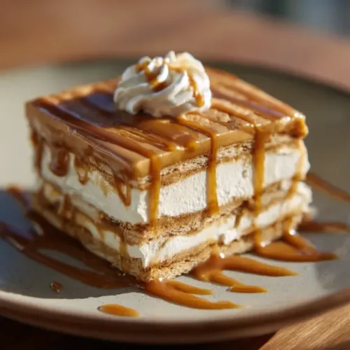 Imagine serving a dessert that derives its delightful sweetness from salted caramel, beautifully balanced by the rich flavors of cream cheese. This icebox cake is a blissful equilibrium of flavors and textures that will astonish your taste buds. Not only that, but it’s also a breeze to assemble, making it a go-to recipe for those last-minute gatherings.