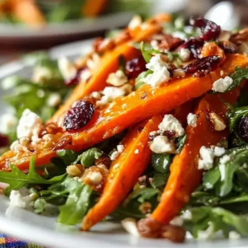 Roasted Carrot Salad is a delightful dish that combines sweet and savory flavors. It is not only tasty but also packed with nutrients. Carrots are loaded with vitamins and minerals, while arugula adds a peppery kick. The blue cheese brings creaminess, and the dried cranberries add a touch of sweetness. This salad is perfect as a side dish or a light meal, making it great for any occasion.