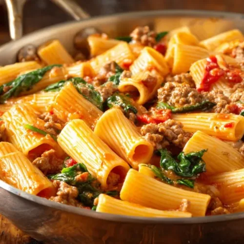 Indulge in the comforting flavors of Creamy Sausage Rigatoni with Spinach—perfect for a cozy family dinner or impressing guests with minimal effort, and it promises to become a sumptuous staple in your cooking repertoire!