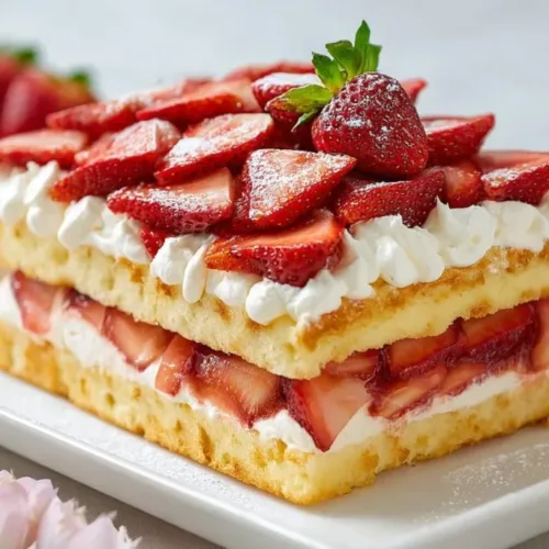 Sheet Pan Strawberry Shortcake is a delightful dessert that is perfect for any occasion. It’s simple to make, serves a crowd, and captures the fresh taste of strawberries. Baking the cake in a sheet pan allows for easy preparation and serving, making it ideal for parties and gatherings. The combination of fluffy cake, sweet strawberries, and creamy topping creates a balance of flavors that is hard to resist. Plus, it’s an impressive treat that looks beautiful on any dessert table!