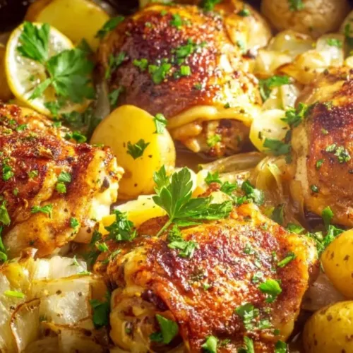 A: Yes, you can bake this dish in a casserole dish at 375°F (190°C) for about 45 minutes after searing the chicken and preparing the potatoes.