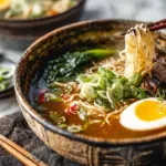Serve the ramen hot in deep bowls. You can garnish each bowl with additional scallions, sesame seeds, and a light drizzle of sesame oil. The soft-boiled eggs add richness and flair, making the dish even more delightful. Enjoy it with chopsticks or a spoon for the broth!