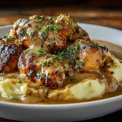 Smothered Chicken Thighs with gravy is a comforting and delicious dish that everyone loves. It’s great for a family dinner or a cozy meal on a chilly night. The rich gravy made with cream and spices perfectly complements the tender chicken thighs, making each bite flavorful. Plus, it’s easy to make with simple ingredients, and it brings warmth to your dinner table.