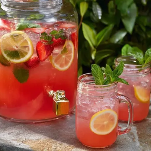 Minty Hibiscus Dream: Swap out traditional lemonade for hibiscus tea lemonade for a floral twist and vibrant color, then garnish with a few edible flowers.