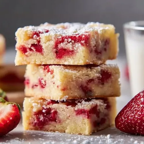 Strawberry blondies are best served warm or at room temperature. You can enjoy them plain or dust them with powdered sugar for a touch of elegance. They also pair wonderfully with a scoop of vanilla ice cream or a dollop of whipped cream on top.