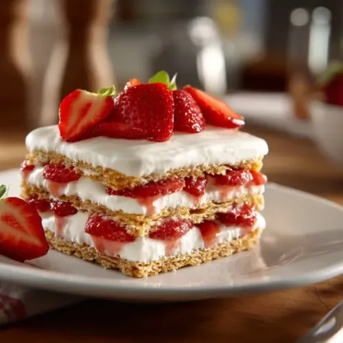 What’s more satisfying than a rich, creamy dessert that brings a pop of fruity freshness? Imagine sinking your fork into layers of luscious cream, fresh strawberries, and crunch from graham crackers, all drizzled with a velvety frosting. The Strawberry Eclair Cake is not only a delight to the palate but also extraordinarily uncomplicated to whip up. This no-bake dessert is a fantastic choice for entertaining guests or to sweeten up a weeknight dinner, making it a perfect crowd-pleaser that requires minimal effort. Its beautiful presentation and delectable taste will impress anyone who takes a bite, beckoning even the non-dessert lovers to come back for more.