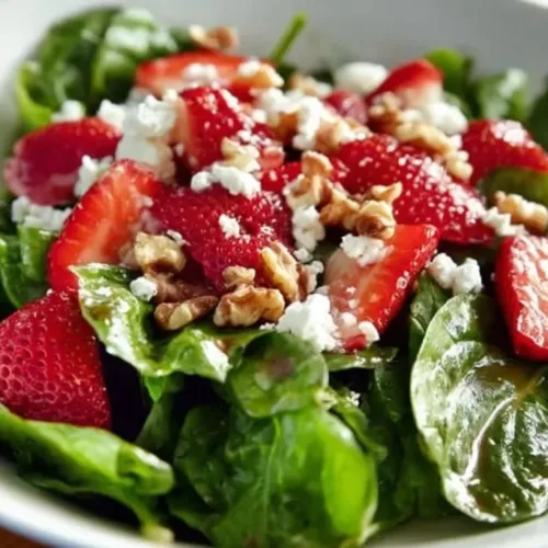 This salad is not only tasty but also nutritious. It is loaded with vitamins from the spinach and strawberries and healthy fats from the walnuts. Plus, it’s a great option for a light lunch, a side dish, or even a festive gathering. The combination of flavors will impress your family and friends.
