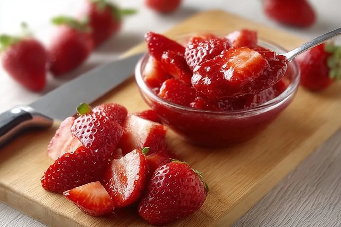 - In a mixing bowl, combine the sliced strawberries and 1/4 cup of sugar. Toss them gently and let them sit for about 15 minutes until they release their juices.
