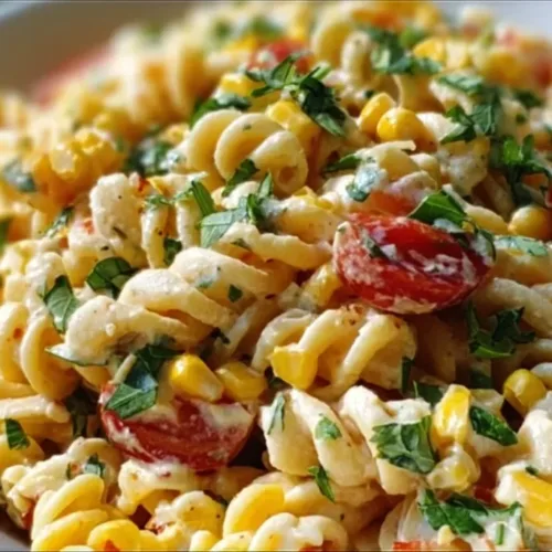Street Corn Pasta Salad is a fun twist on traditional pasta salads. It brings together the flavors of street corn, which is popular in many cultures. This salad is not only delicious but also refreshing and easy to make. It is perfect for picnics, barbecues, or as a side dish for any meal. The combination of roasted corn, creamy cotija cheese, and zesty lime juice makes every bite a delight.
