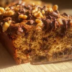 Pour the batter into your prepared loaf pan. This is where you can get creative—top it with a sprinkle of more vegan chocolate chips and chopped walnuts if you like a little extra treat on top!