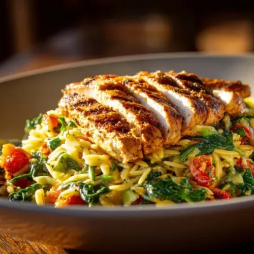 The combination of chicken breasts, rich sun-dried tomatoes, and fresh spinach with cheesy orzo ensures that you’ll be savoring every forkful. It’s packed with nutrients, making it a wholesome choice that the whole family can enjoy. Best of all, it can be made quickly, so you don’t have to spend hours in the kitchen.